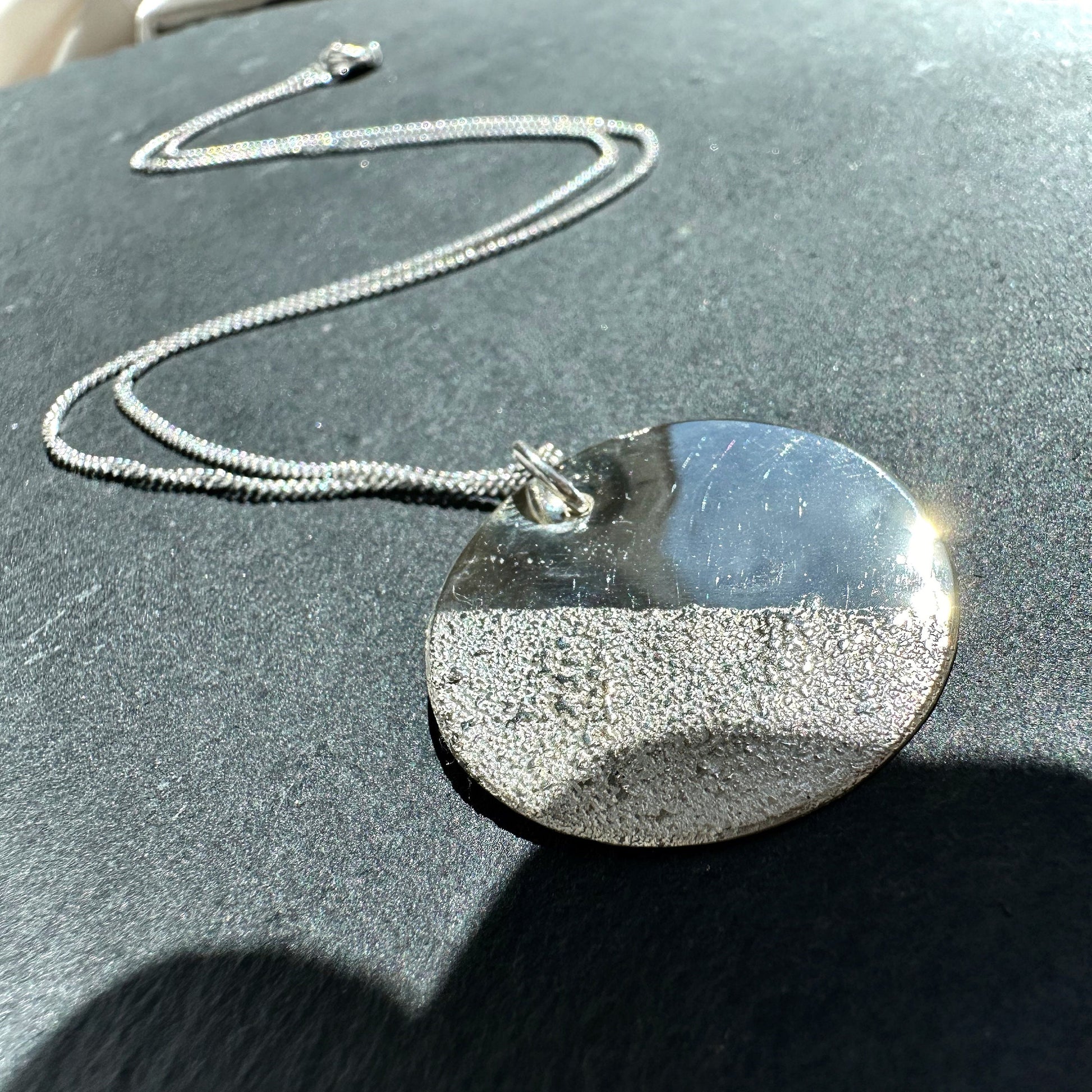 Moon Textured Sterling Silver Necklace